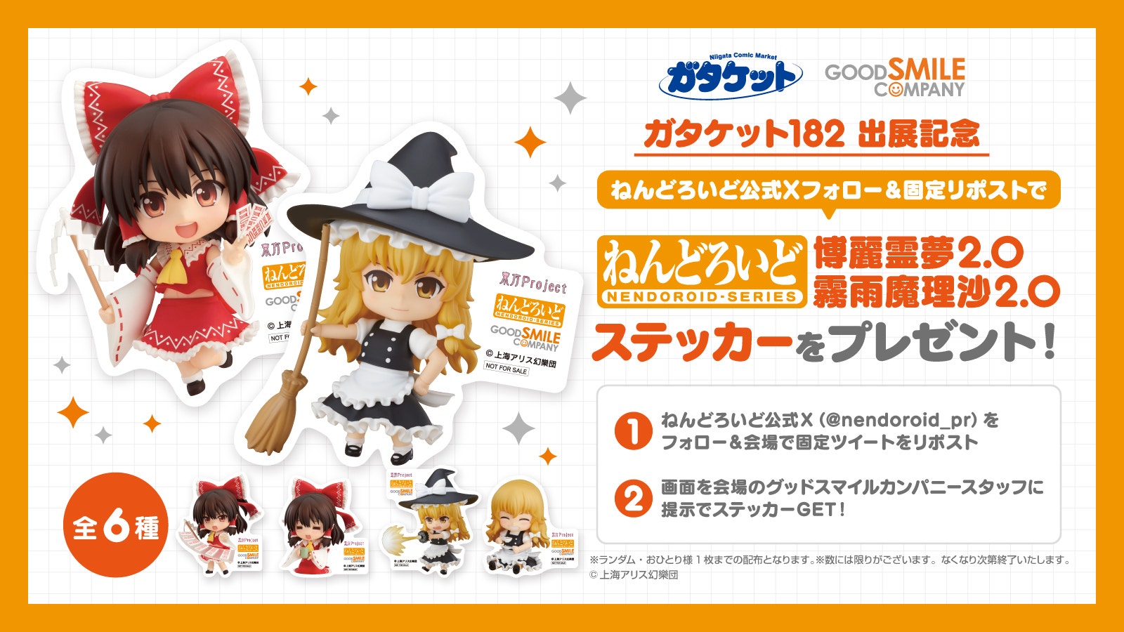 条件達成&会場でスマホの画面提示で、会場限定「東方Project」ねんどろいどオリジナルステッカーをプレゼント!